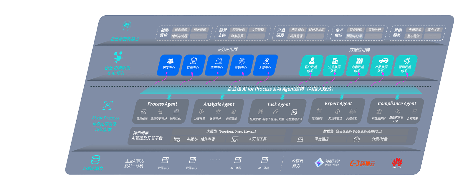 端到端的一站式AI工作空间深度融合了从企业战略规划到日常经营的全流程业务板块,,定向解决车企内部领域多、、、、部门多、、、链条长、、场景碎片化等难题,,,支持车企快速构建以AI为核心的生产力写作体系,,实现任务执行与AI能力的无缝集成与交互